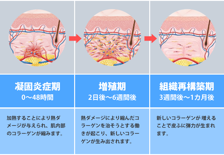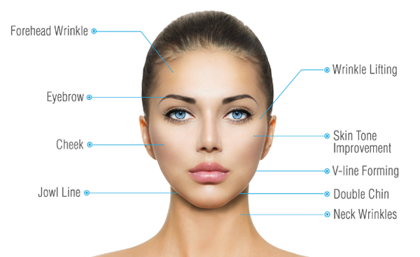 Ultraformer IIIによる治療は、焦点式超音波(HIFU)を皮フや皮下に与え、組織内で凝固作用を起こしてコラーゲンの生成および再生を促す治療で、顔各部のリフトアップ効果、皮フを再生させ老化を予防する効果、たるみを改善し肌の若さを取り戻す効果、老化によるたるみやシワがある肌を改善する効果などがあります。